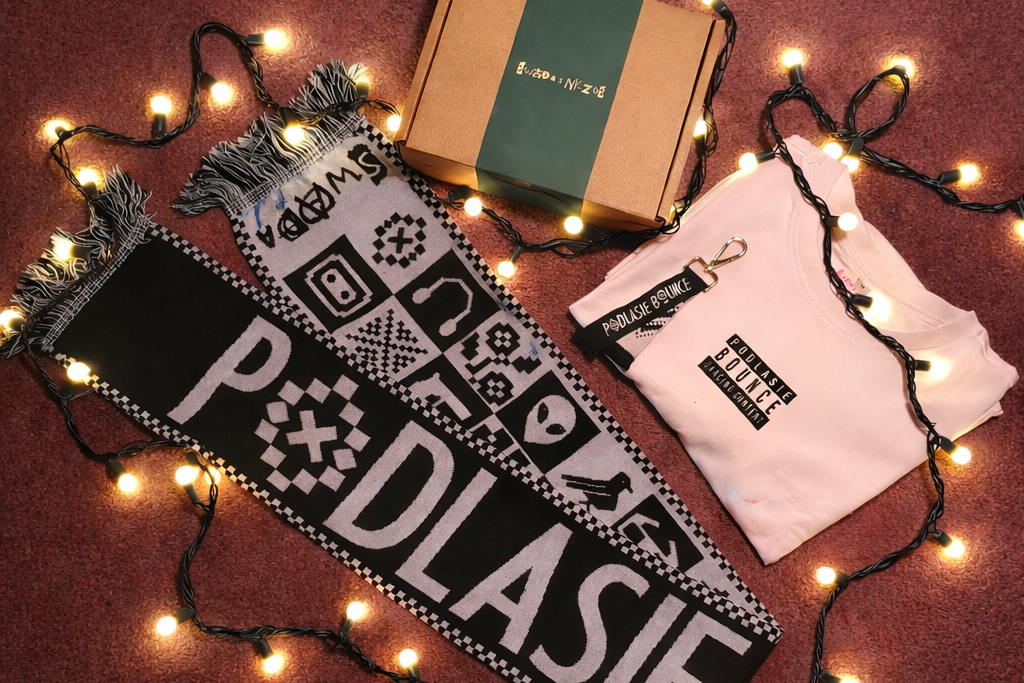Tylko, jeśli chcesz uszczęśliwić kogoś w 200 %. Przepiękny, super ciepły szalik, wspaniale dopełnia legendarny, oversize’owy Ti-szert Podlasie Bounce. A całość dripu spina niepowtarzalna krajka w stylu podlaskiej mangi. Równie dobrze działa w święta katolickie, prawosławne i inne, a obsypany/a prezentami tej jakości będzie się wyśmienicie prezentować przez najbliższe lata.